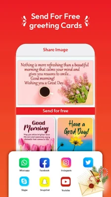 अपने दिन को सकारात्मक ऊर्जा से भरने के लिए, सुप्रभात उद्धरण और संदेश के प्रेरणादायक संदेश और कॉफी, फूलों या प्रेम चित्रों के साथ मोहक सुप्रभात शुभकामनाएं आपका इंतजार कर रही हैं। यह ऐप सिर्फ सुबह तक सीमित नहीं है; यह दोपहर की सुखद शुभकामनाओं से लेकर शाम की शांतिपूर्ण छवियों तक, हर पल को खास बनाने के लिए डिज़ाइन किया गया है। चाहे कोई जन्मदिन मना रहा हो, या आप किसी का आभार व्यक्त करना चाहते हों, हमारे पास धन्यवाद संदेशों और कार्डों का एक विस्तृत संग्रह है जो आपके भावनाओं को सटीक रूप से प्रस्तुत करेगा।