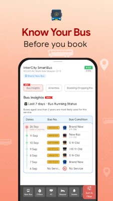 अभीबस को भारत की सबसे तेज़ बस बुकिंग ऐप के रूप में जाना जाता है, जो आपकी यात्रा को सरल और सुरक्षित बनाता है। यह आपको लाइव बस ट्रैकिंग, आसान आरक्षण, और बाज़ार में सबसे बेहतरीन छूट का लाभ उठाने का अवसर देता है। हमारी नवीन सुविधाओं में निःशुल्क रद्दीकरण, त्वरित बैंक खाते में वापसी, यात्रा बीमा, और महिला सुरक्षा सीट चयन जैसी विशेषताएँ शामिल हैं, जो यात्रियों को अद्वितीय सुविधा और मन की शांति प्रदान करती हैं। 16 वर्षों के अनुभव के साथ, अभीबस ने यात्रियों की ज़रूरतों को समझा है और इसी समझ के साथ लगातार नई और बेहतर सेवाएँ प्रदान करता आ रहा है, जिसमें एम एस आर टी सी की साधी, यशवंती, हिरकणी, शितल, शिवनेरी, अश्वमेध, शिवशाही वातानुकूलीत जैसी सभी बसें भी रियायती दरों पर उपलब्ध हैं।