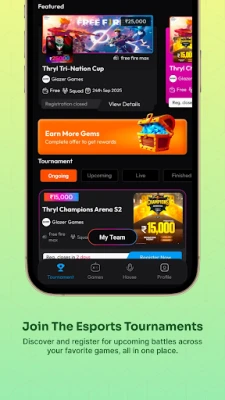 THRYL आपको लोकप्रिय गेम्स के लिए सुनियोजित ईस्पोर्ट्स टूर्नामेंट्स में भाग लेने का विशेष अवसर देता है। यहाँ आप अपनी कौशलता का प्रदर्शन कर सकते हैं, रणनीतिक रूप से टीमों के साथ मिलकर खेल सकते हैं और रैंकिंग में ऊपर चढ़ सकते हैं। अपनी खुद की शक्तिशाली टीम बनाएं, सदस्यों का कुशलतापूर्वक प्रबंधन करें और सामूहिक जीत के लिए मिलकर प्रतिस्पर्धा करें। वास्तविक समय में मैच के अपडेट्स, स्कोरिंग और टीम की स्थिति पर लगातार नज़र रखें, और अपनी टीम की प्रगति एवं मैच के इतिहास का विश्लेषण करके निरंतर सुधार करें।